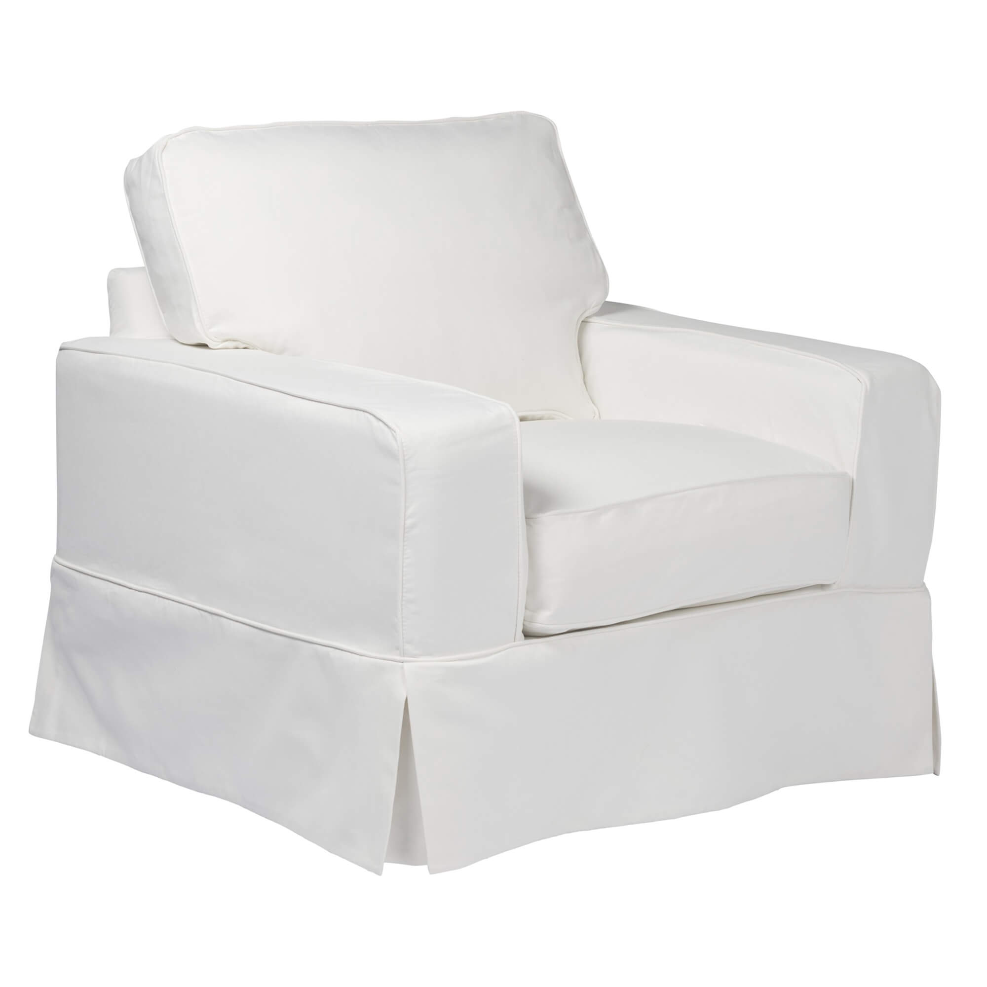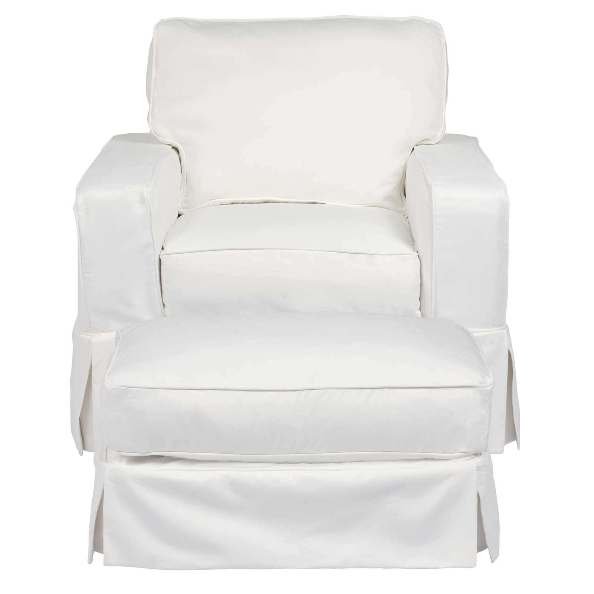 You can change your furniture like you change your clothes! Your living space can wear crisp linen in spring, white denim in summer, and blue after Labor Day. Sunset Trading Americana Slipcovered Furniture Collection includes sofa, loveseat, chair, and ottoman. Manufacturer ID: Chair Frame SU-1085-20M Manufacturer ID: Chair Slipcover SU-108520SC-391081 Manufacturer ID: Ottoman Frame SU-1085-30M Manufacturer ID: Ottoman Slipcover SU-108530SC-391081