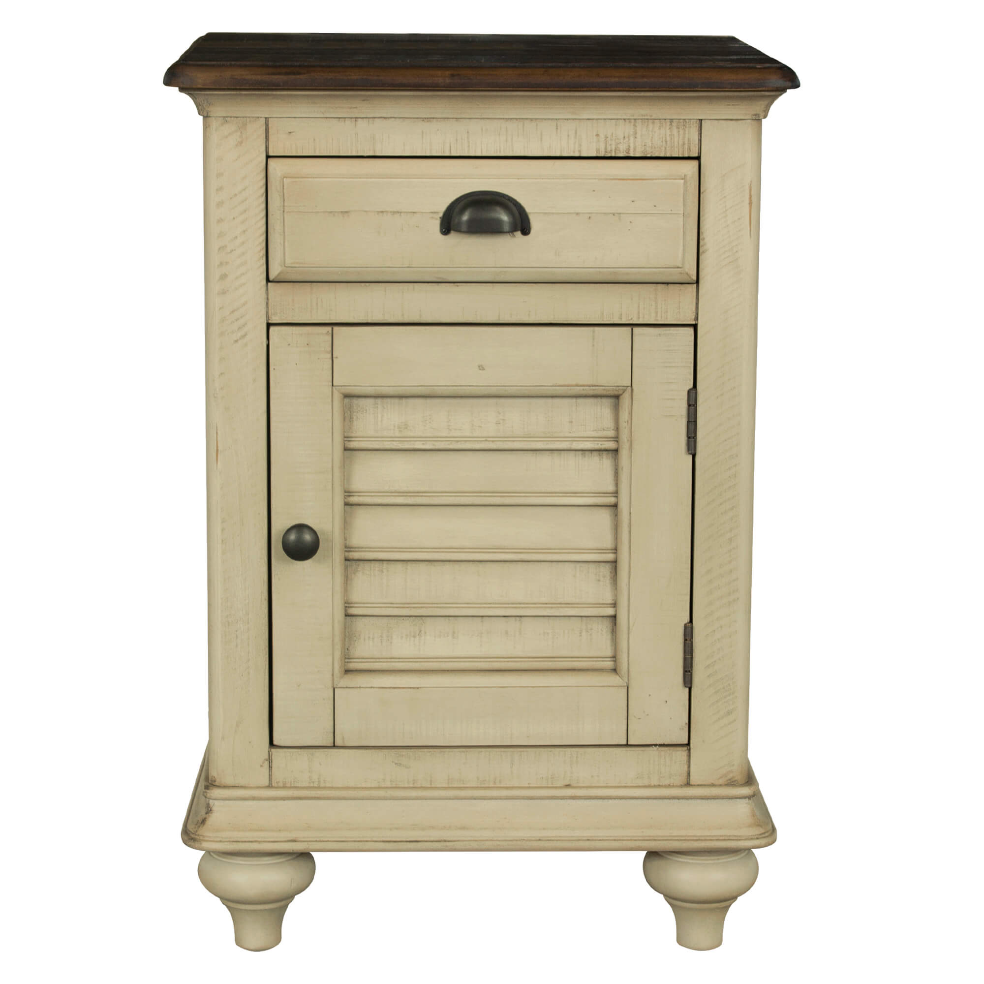 Farmhouse charm with an island vibe, this light and breezy bedside table will add coastal living chic to your lake house, traditional home or high rise. Barefoot and casual or elegant and chic, the neural two toned wood is reminiscent of ocean waves and resort retreats. Equipped with plugs and USP ports for your electronics and plenty of storage, convenience will be at your side with this best choice in bedroom furniture. When all is said and done, you spend most of your time in your bedroom, sleeping, dressing, snoozing and playing. Make it more enjoyable by investing in furniture you love. Like the surf hitting the sand, have one room flow into the other, create a curated look with matching bedroom pieces and living room tables.